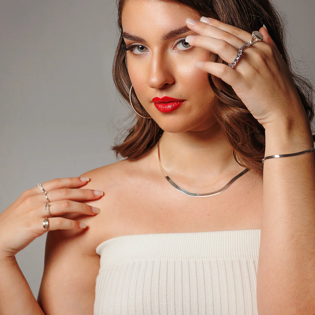 The Theresa Thick Herringbone Necklace is a timeless classic with a touch of Italian luxury....