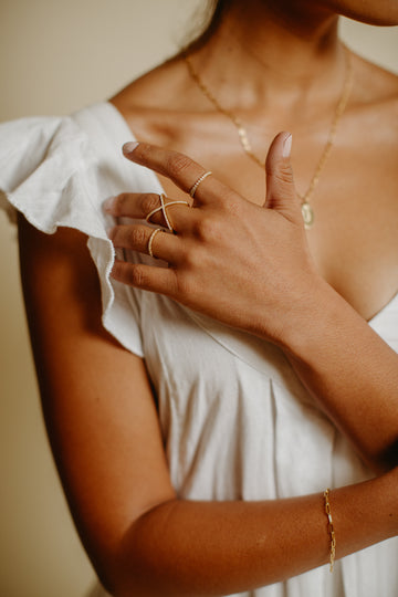 Our fine jewelry collection is made of 14kg yellow gold and white gold. Our sustainable collection is made with 100% sterling silver as the base metal and adding 2.5 - 3 microns of yellow gold. Our gold filled collection is made with 14kg or 18kg yellow gold, depending on the collection and style.